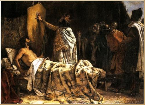 Many of the paintings that depict the story, just like many of the poems and narrative accounts told about Wilfred, the King, and the four lines of blood on a shield, are produced by and for elites. Here is Pau Bejar’s Llegenda de les quatre barres de sang (1892):